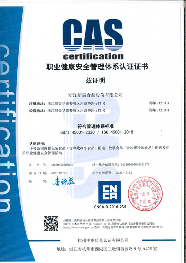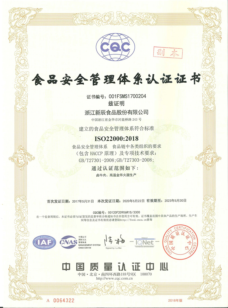 榮獲“食品安全管理體系認(rèn)證證書”