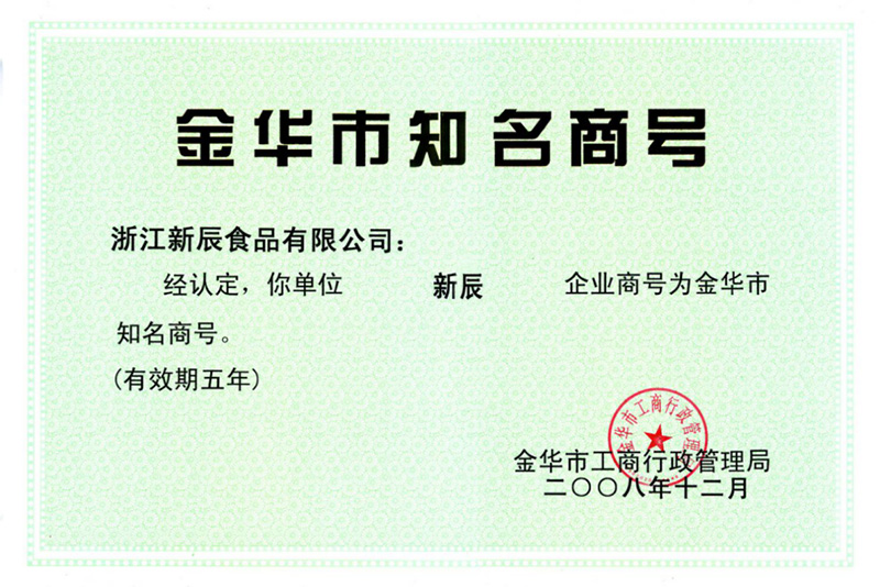 榮獲 “金華市知名商號(hào)”