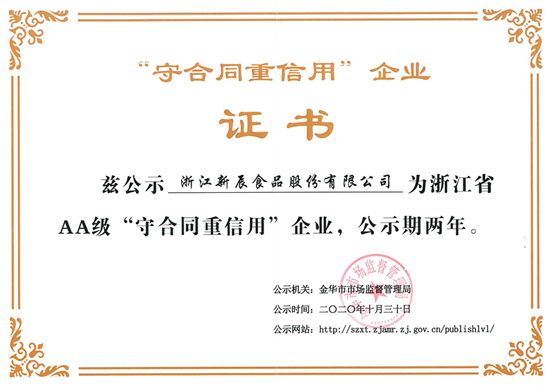 被評(píng)為浙江省aa級(jí)“守合同重信用”企業(yè)
